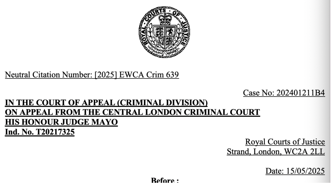 2025年5月15日,英格兰刑事上诉法院(Court of Appeal)正式作出判决,驳回了张某的大部分上诉理由,但对量刑部分作出修正: