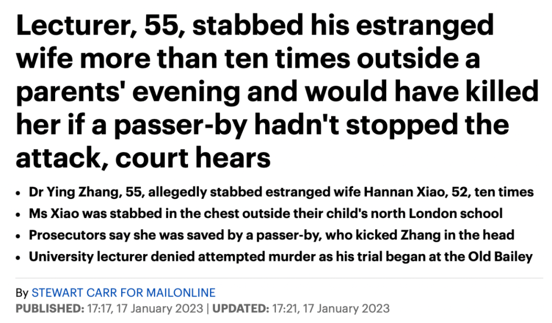 2023年1月31日,中央刑事法院(Old Bailey)审理后,陪审团判定张某犯有“企图谋杀”和“在公共场所持有刀具”两项罪名,案件随即进入量刑阶段。