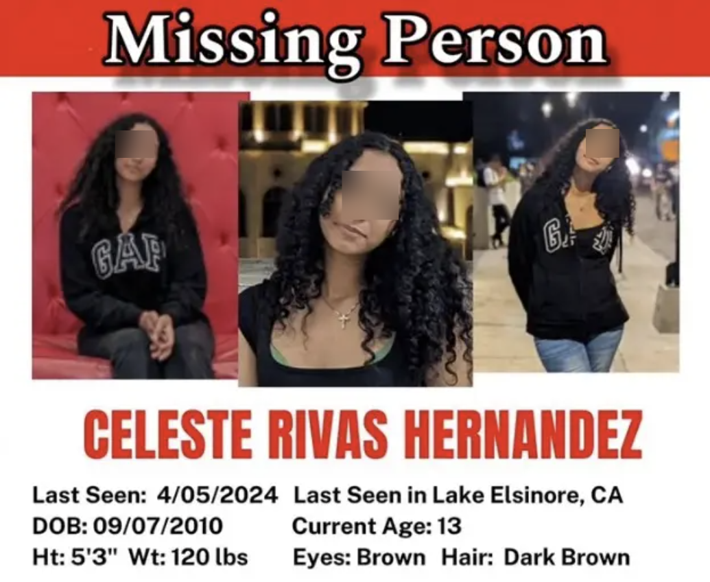 而遇害少女塞莱斯特(Celeste Rivas),她出生于2010年,在去年4月神秘失踪,当时还未满14岁。