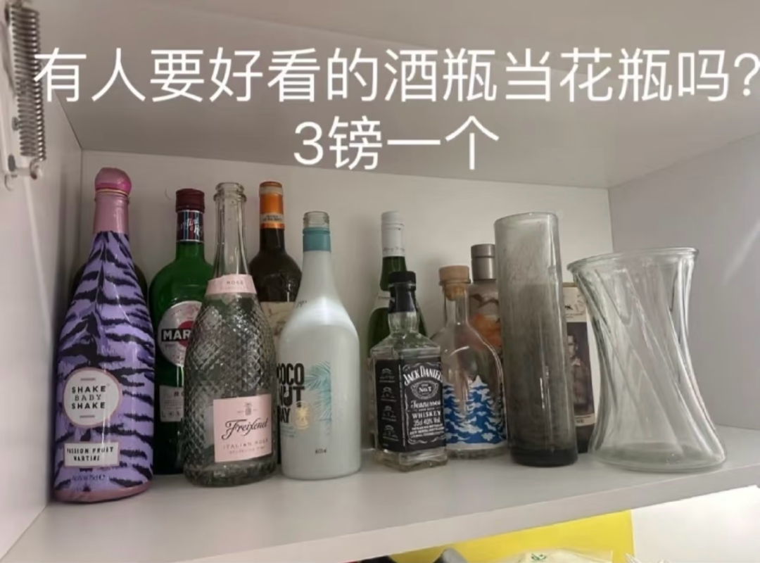 酒瓶当花瓶卖也就算了,还敢卖£3一个?而且这酒瓶哪好看了?卖家审美独特。咱随便去超市买一瓶酒,喝完就能免费得到一个全新的花瓶。这都能拿出来二次创业,真是见识到了人类物种的多样性。