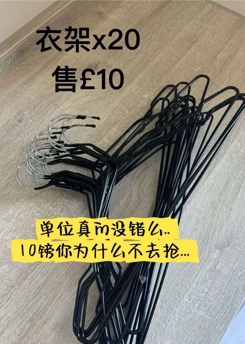 20个衣架卖£10,全新的衣架都没这么贵,这不是在出二手,这是在抢劫!莫非这些衣架出自哪位艺术大师之手,我等普通人并不能体会到其中的深意,所以才会觉得贵?是我们不配用这些衣架了。