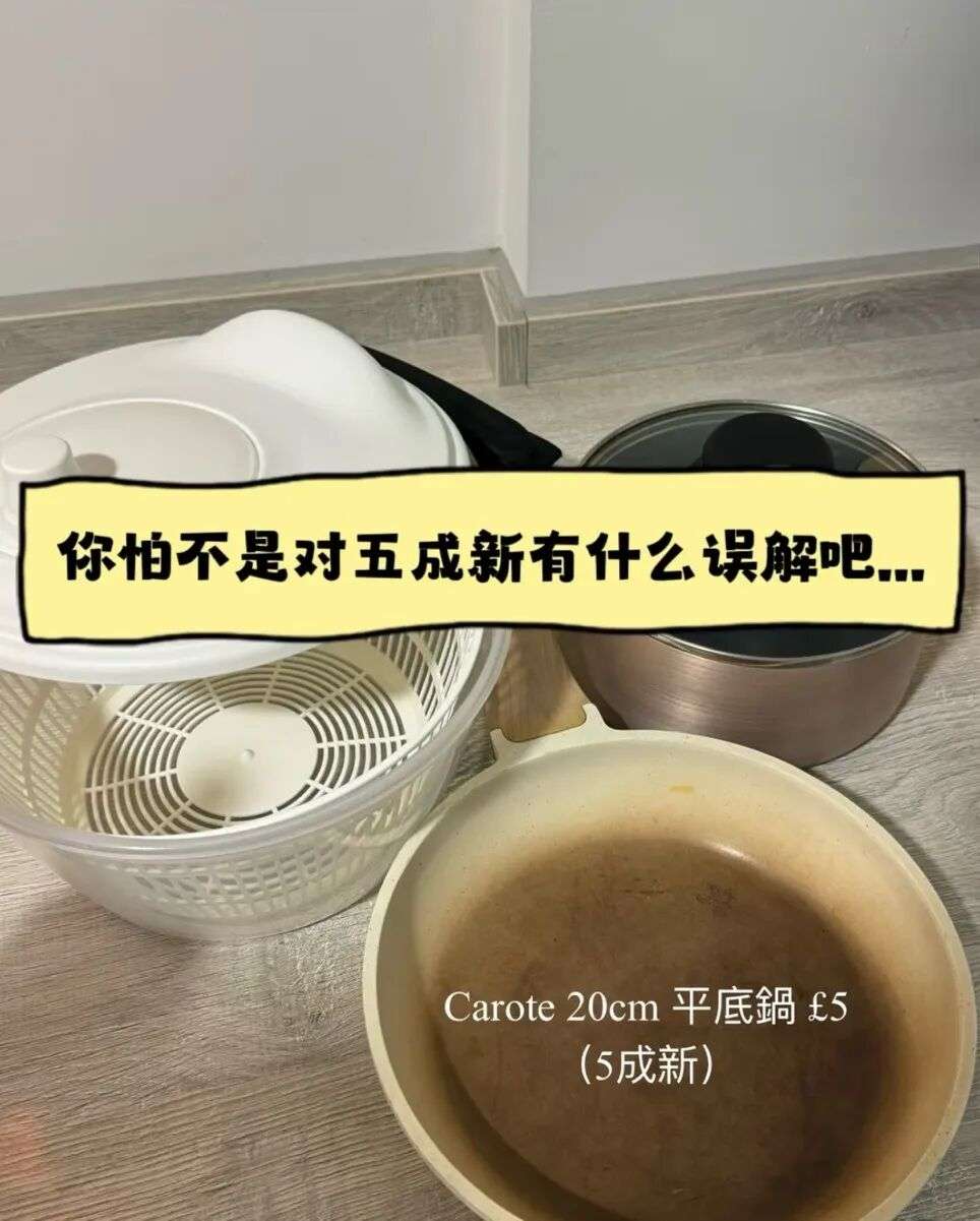 平底锅都用成这样了,还厚着脸皮说五成新,这位卖家一定是对五成新有什么重大的误解吧。感觉这个平底锅也是可以拿到英国永居的程度。