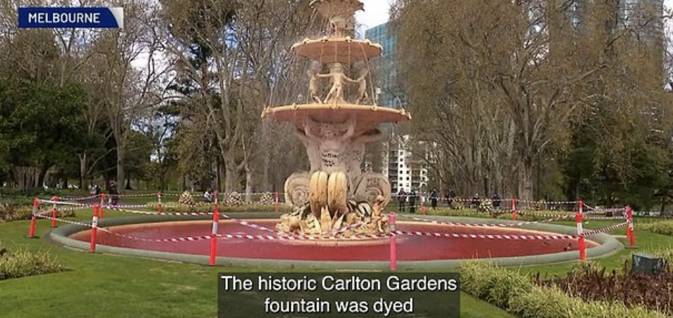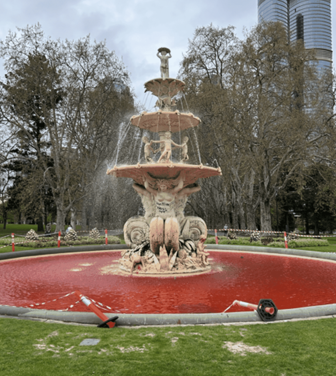 收藏太离谱,红水+涂鸦!墨尔本140年地标喷泉被破坏,网友都怒了!