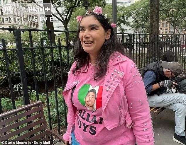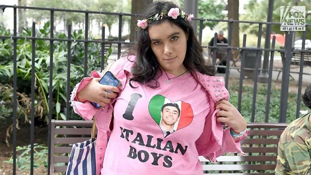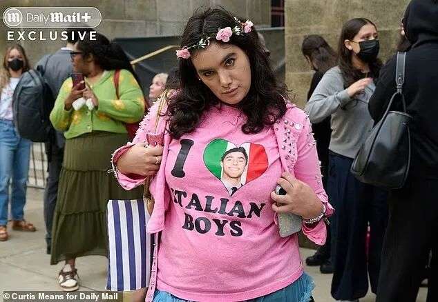 其中有一名女粉丝格外显眼,她穿着印有路易吉头像的粉红色上衣,用衣服大胆表白:“我爱意大利男孩”。