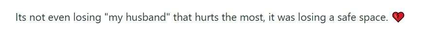 她十分难过,“失去‘我的丈夫’不是最伤人的,最伤人的是,我失去一个安全空间。”