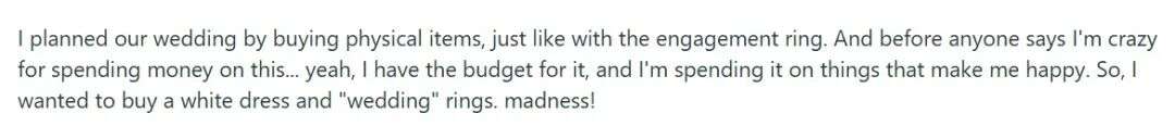 很多人于是沉迷于此,谈到后来也和莫杜尼奥一样,决定和AI走入婚姻,甚至真情实感地举行仪式,购买戒指和婚纱。