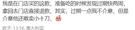 也有用户提到,就连预包装的披萨饼也出现过发霉后仍被放在冷藏柜中原价销售的情况。