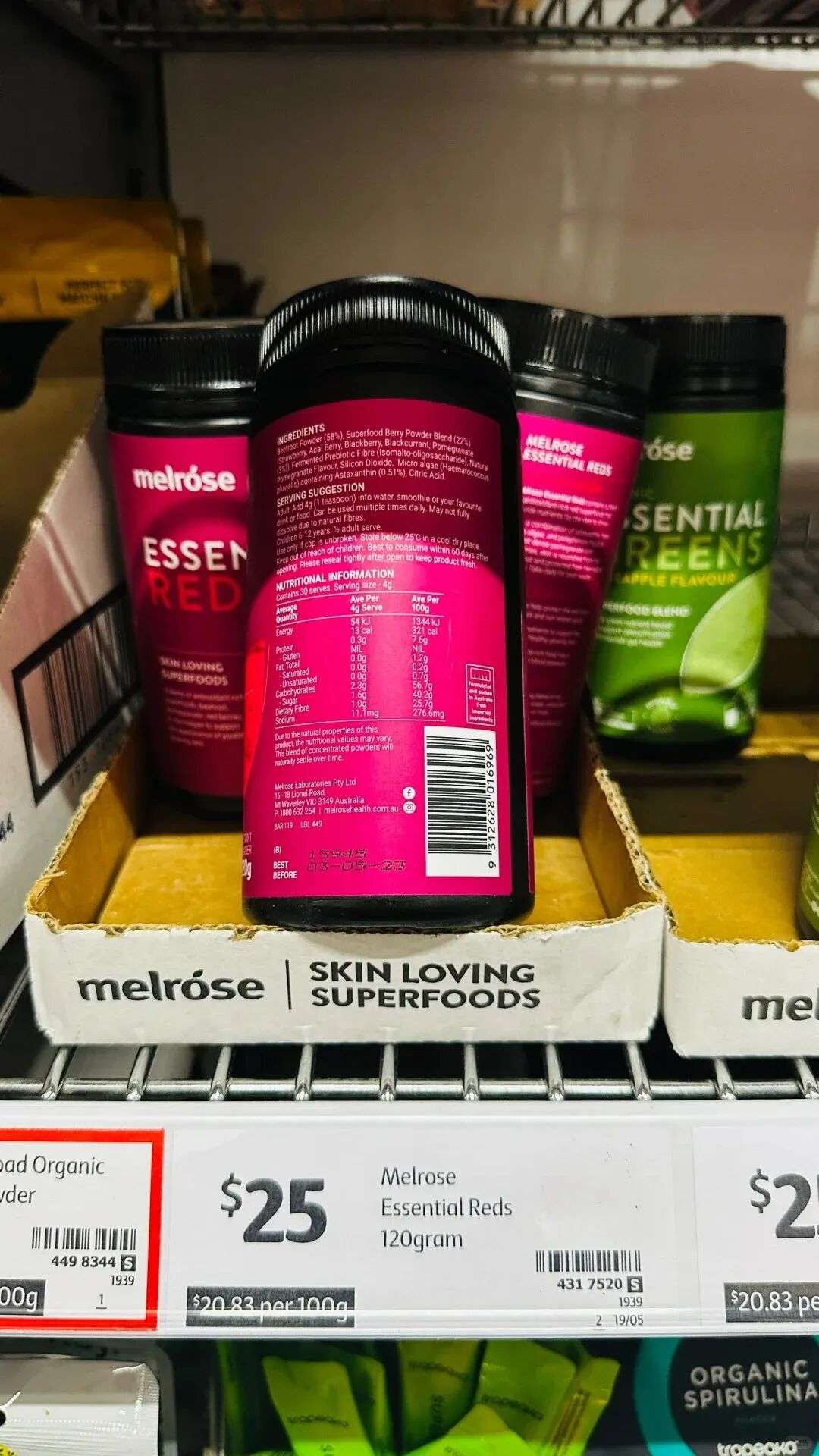 据其发布照片显示,在Coles货架上,一款售价25澳元的“Melrose Essential Reds”的保健品,竟早已在2023年5月3日过期,至今已过期近两年半,却依然明目张胆摆在货架售卖。