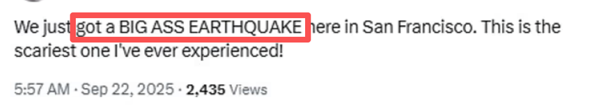 收藏突发! 地震突袭西岸 房子猛烈摇晃 孩子吓哭 机场警报狂响 专家警告!