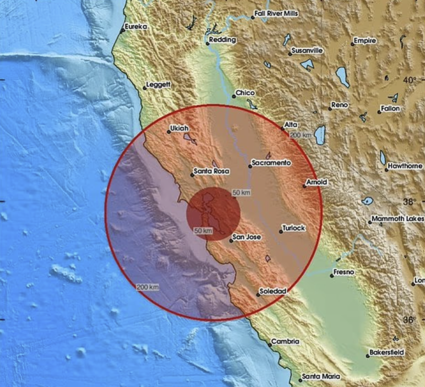 据悉,本次地震刚好就发生在海沃德断层(Hayward Fault)上。