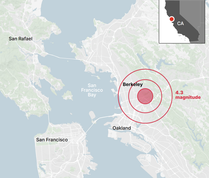 此次震中位于加州大学伯克利分校附近,震源深度约7.8公里,地震持续了约4分钟,强烈地晃动感惊醒了当地居民。