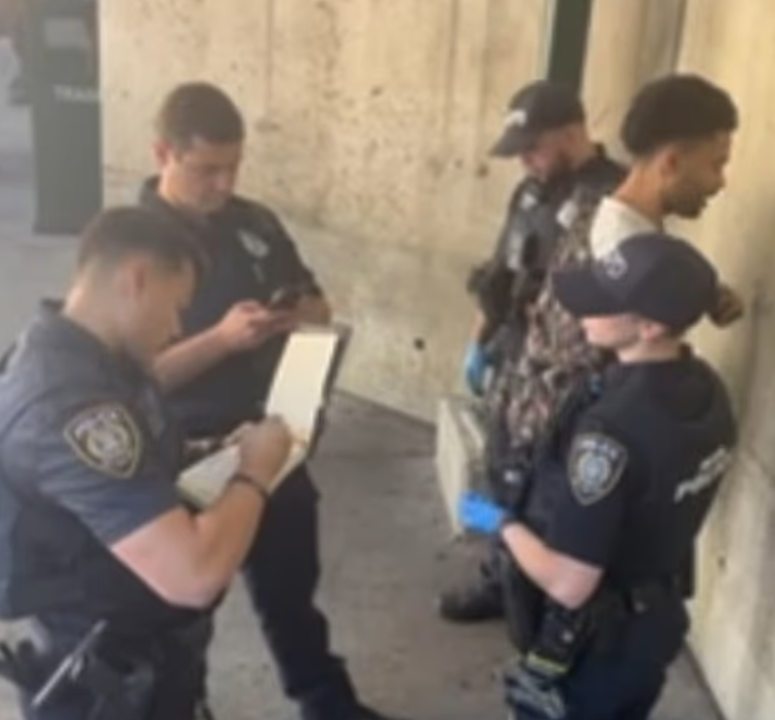 奥基夫在社交媒体上写道:“他们没有向那位白人女子取证,就直接把我抓走。”他还贴出一张自己在站台上双手反铐、被四名警察包围的照片。
