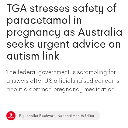 在澳洲,Tylenol 也可以买到。不过澳洲药物管理局(TGA)强调,目前没有任何关于“扑热息痛与孕期安全”或“与自闭症相关”的活跃调查。