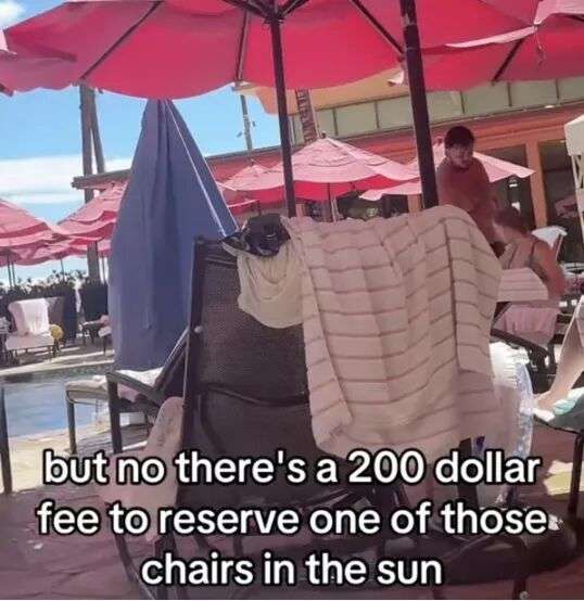 据旅客描述,泳池旁边或海滩上的躺椅需要200大洋预订。想象一下,花$200坐在椅子上。这是强制性的度假费,而这些费用是在昂贵的房间费用之上。