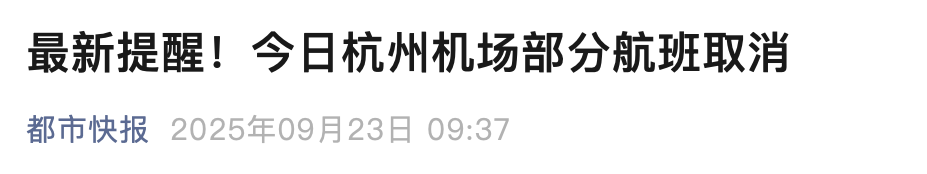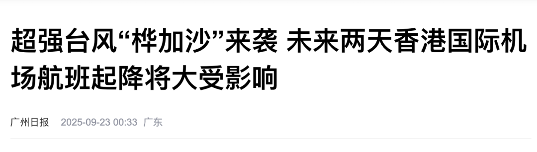 航班自9月23日下午6时起停运,预计在9月25日凌晨6时后才能逐步恢复。