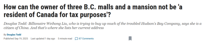 这引发了外界争议:一个在加拿大有房产、有公司、持有巨额资产的人,为什么可以“不算税务居民”?