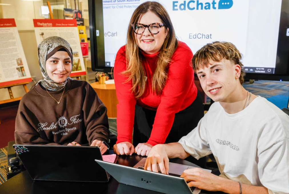 南澳州Thebarton高级学院的学生正在使用教育部批准的新版EdChat聊天机器人。图片:Russell Millard摄影