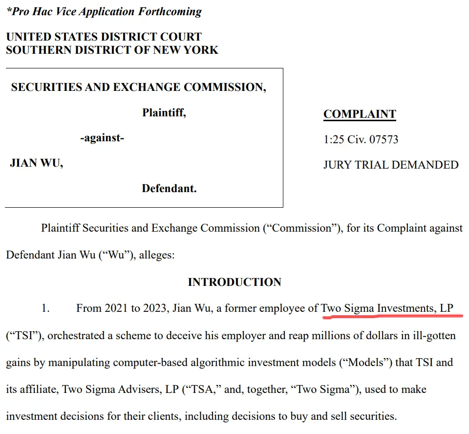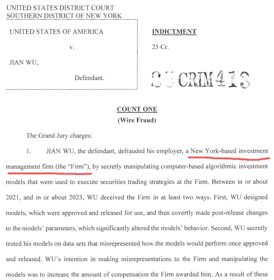 在华尔街光鲜亮丽的量化金融世界里,一场丑闻正剧烈发酵。主角正是一名年仅34岁的华人量化分析师——吴某(Jian Wu,音译)。