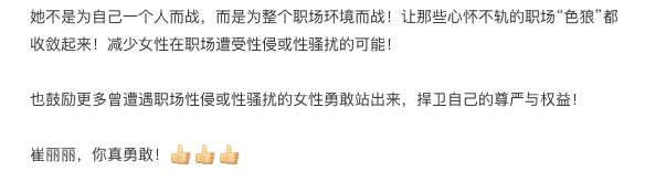 而反观我们的生活中,在职场上,女性遭遇的伤害还少吗?可是有多少人敢勇敢站出来?