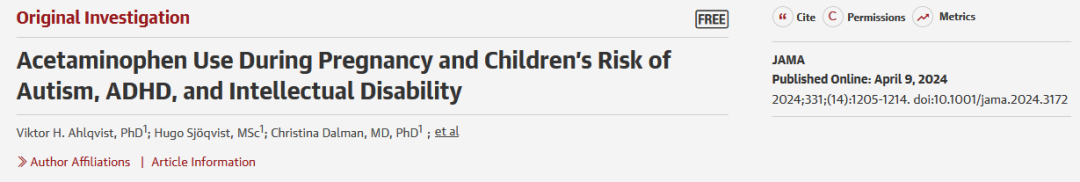 目前关于扑热息痛与自闭症关联的一项大规模研究来自瑞典,相关研究成果于2024年发布。