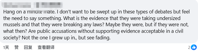 “等等,我不想卷进这种争论,但我必须说:你们有什么证据证明他们采的是小青口,或者违法了吗?也许他们真的采了,但如果没有呢……我成长的社会不是这样的,但现在好像越来越模糊了。”