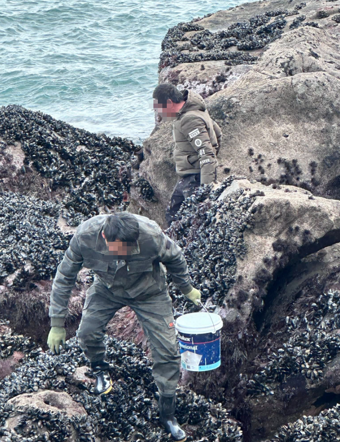 她说,“最开始有两个人在礁石上采,以为我们不会跟着,但我们跟上去,他们还是继续把一些很小的青口拔下来。
