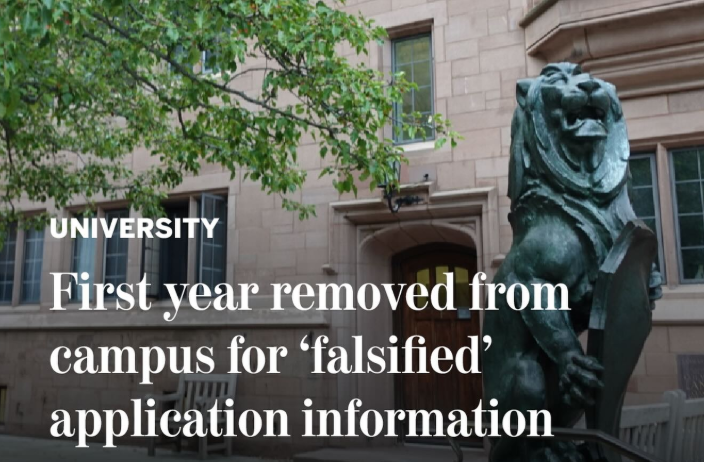 校方发言人 Paul McKinley 表示,该学生“提交了虚假的信息”,“在其申请中存在不实陈述”,并被认为“歪曲了本人情况”。