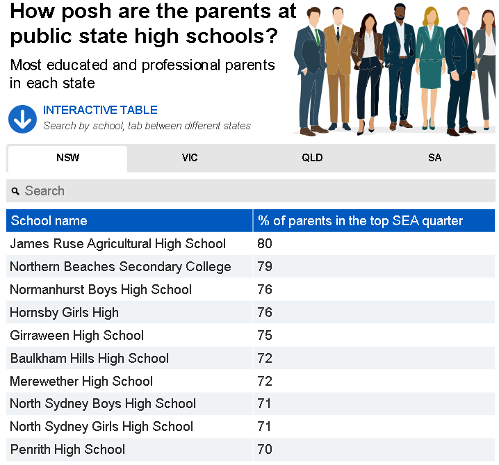 最新数据显示:澳洲排名前100的公立高中,其实有不少家长背景比私校还“壕”。