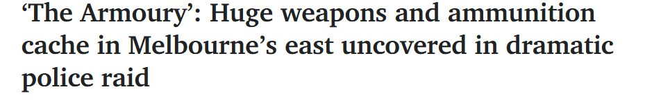 Ref: https://www.heraldsun.com.au/truecrimeaustralia/police-courts-victoria/the-armoury-huge-weapons-and-ammunition-cache-in-melbournes-east-uncovered-in-dramatic-police-raid/news-story/bd9bb32b811a47cfcd5ae7880b8be17c
