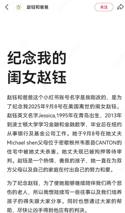 沈某的背景也引起关注。据报道,他近期曾有国际旅行经历,案发前不久刚从意大利返美。作为美籍华人,他与赵钰在美国相识并结婚,但两人并无子女。