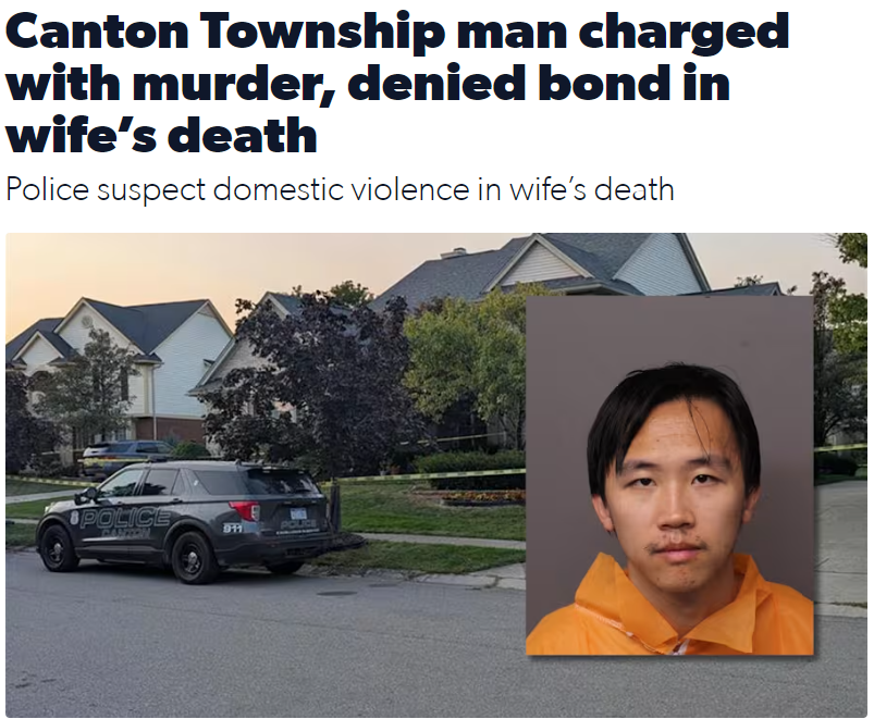 密西根州韦恩县坎顿镇(Canton Township)本月初发生一起震惊华社的惨案。30岁的华裔男子沈绍楠(Michael Shaonan Shen,音译)涉嫌在家中卧室勒死妻子赵钰(Yu Zhao),现已被当地检方以一级预谋谋杀罪正式起诉,并被法官拒绝保释。