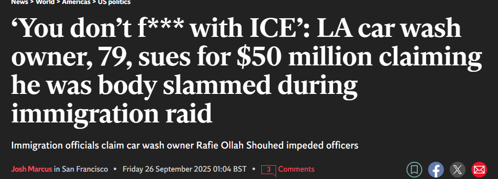 收藏赴美40年!79岁美国公民洗车行遭ICE暴力逮捕,怒告索赔5000万美元