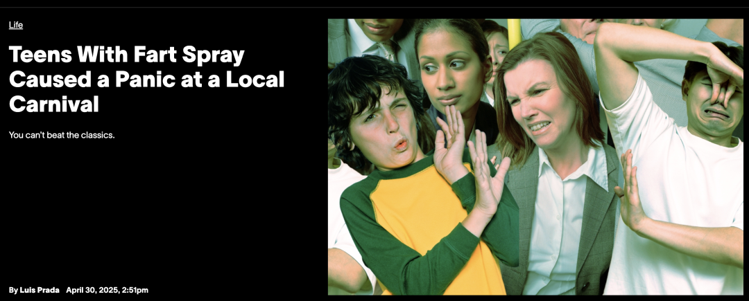 今年4月,有两名青少年在当地嘉年华上使用强效屁味喷雾,引发恐慌导致大规模疏散。