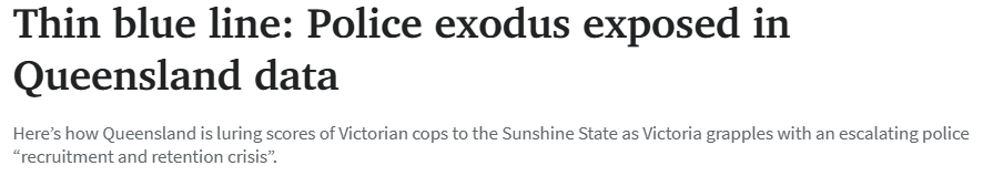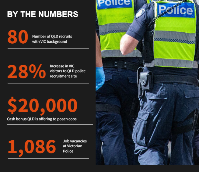 随后Guteridge更是直接曝光:在前来应聘昆州警察的申请者中,有超过10%的有警务经验的人都来自维州,是仅次于新西兰的第二大来源。