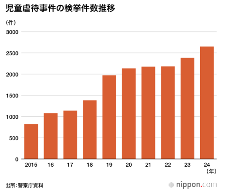 据日本警察厅称,2024年全国警方因儿童虐待而立案侦办的案件数量达到历史最多的2649件,比前一年增加了264件(增长11.1%)。其中有52名儿童死亡。