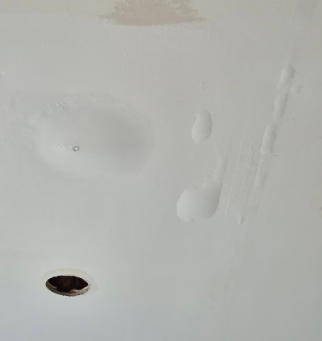 搬进新家第五天,我在楼下厨房转身时,发现水正从天花板沿着装饰线附近倾泻而下,位置正好在楼上套间浴室正下方。
