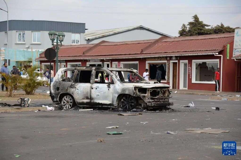 这是9月26日在马达加斯加塔那那利佛商业区拍摄的被抢劫后的商铺。