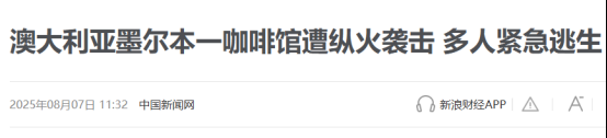 墨尔本一家咖啡馆遭纵火袭击,两名不明身份人员闯入墨尔本东南部一家咖啡馆使用助燃剂纵火。