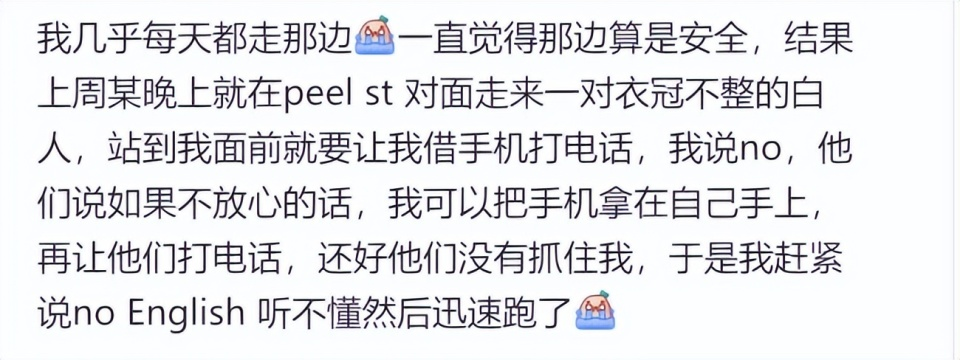 有华人表示,在市区一个下午,被尾随三次