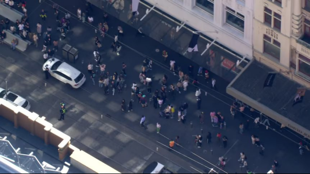 而就在刚刚,就在同样地方,一辆白色轿车高速冲撞到Bourke Street Mall,引发重大骚乱。
