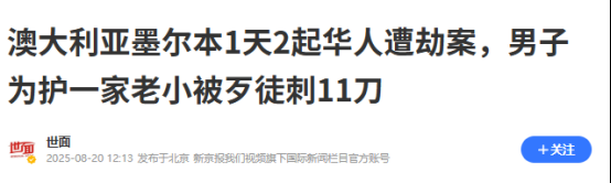 8月17日至18日,澳大利亚墨尔本郊区不到24小时内接连发生两起华人遭入室抢劫案件。