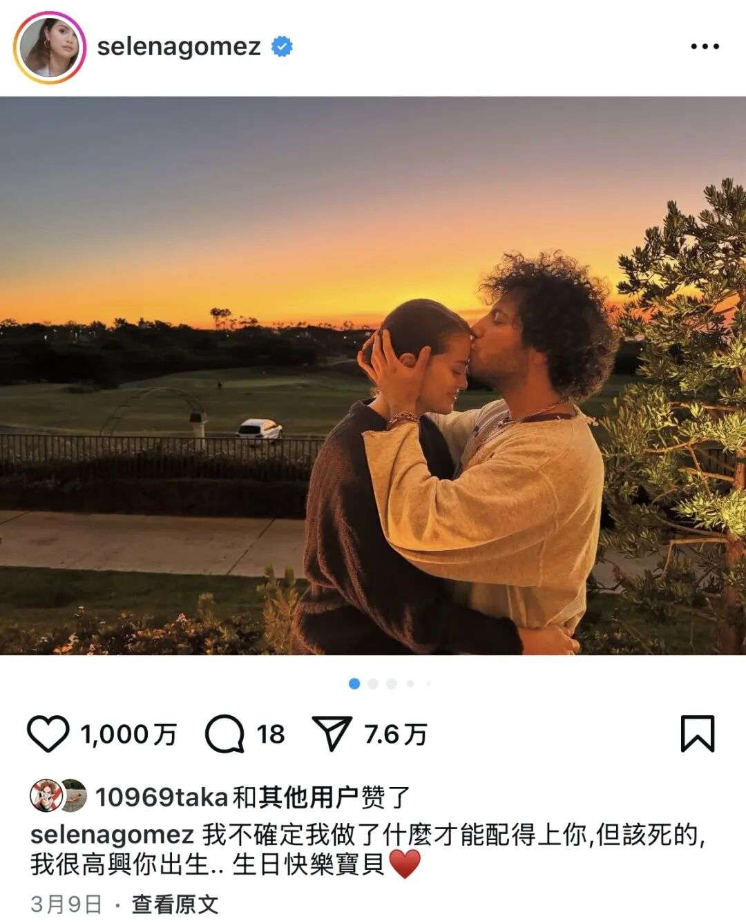 从官宣恋情时,赛琳娜就表达过对本尼的的爱慕和欣赏: