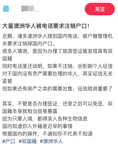 收藏炸锅!! 澳洲华男中国出境被拦! 被强制要求销户! 中国开始严查双国籍, 大批华人或受影响...
