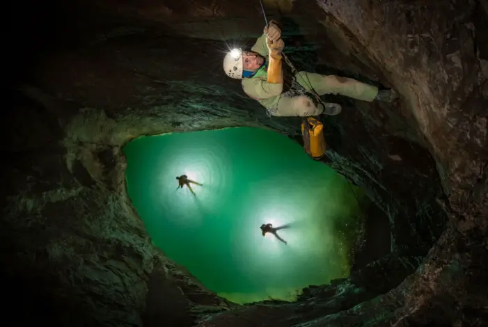 2018 年,佩罗沃队带着《国家地理》的摄影师深入洞底。