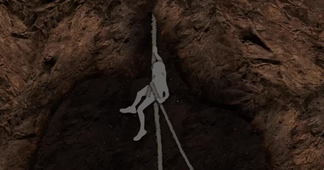 在黑暗中,在地下1100米深的湿冷洞穴中,他独自一人悬挂在一根绳索上,直到最终的死亡。