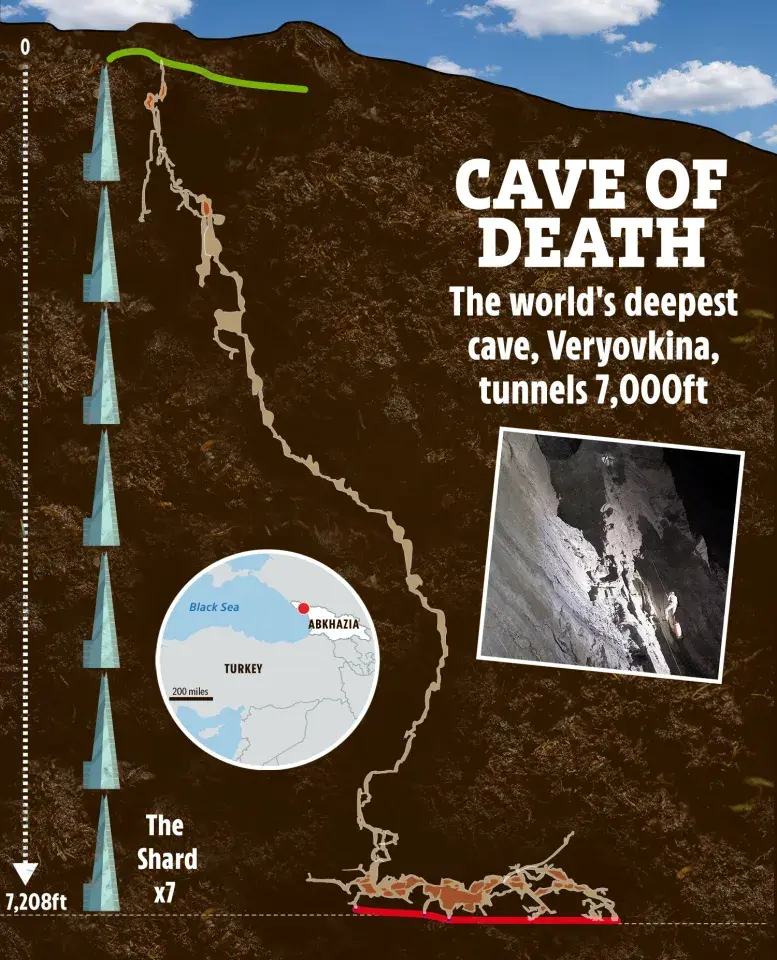 收藏窒息!俄37岁男子独自硬闯世界最深洞穴,却忘带回程装备!悬吊地下1100米8个月才被发现…