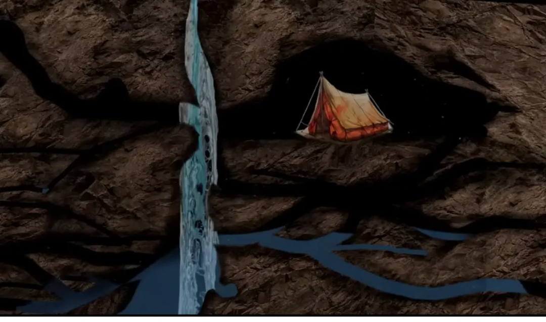 在经历了四天跋涉之后,他们刚刚抵达最深处的营地,突然洪水涌入,下层营地瞬间被淹。