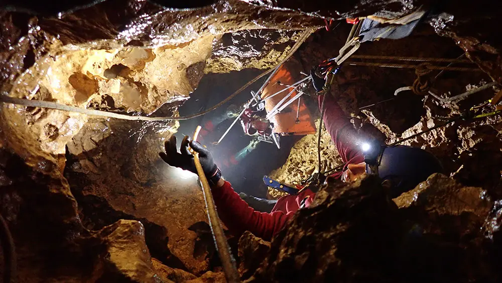 要抵达洞底,需要携带数百公斤物资、连续多日攀降和宿营,途中必须依靠绳索、攀升器和技术攀爬才能前进……