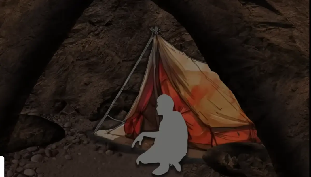 到达竖井底后,再走 60–90 米就是第二营地,深约 610 米,有帐篷、燃气和少量食物。
