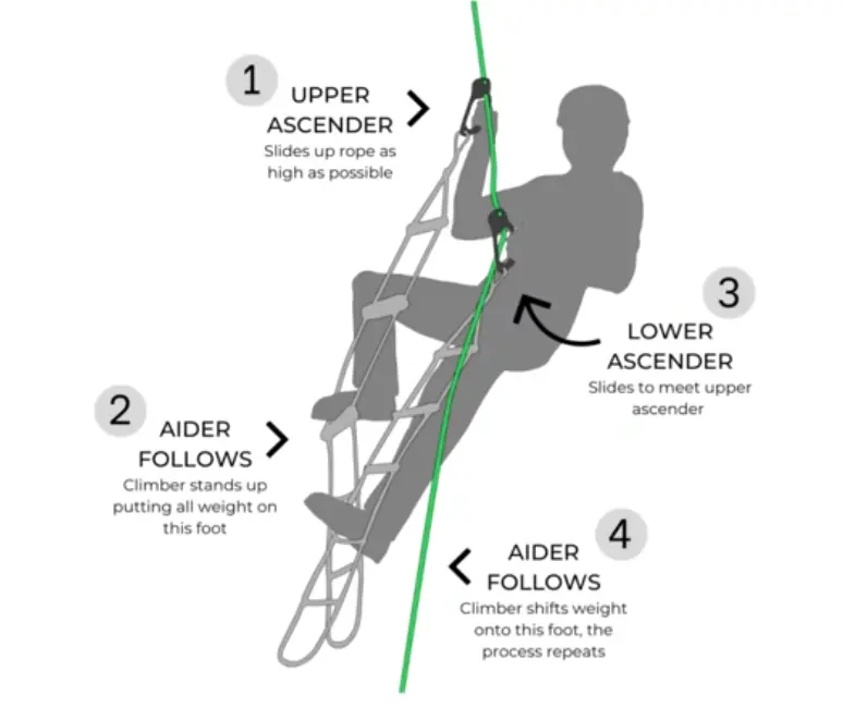 脚蹬是攀回竖井的关键装备,它能让攀登者有地方可踩,下肢发力一点一点爬上去。